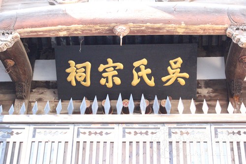 西边山墙上嵌着一尊砖雕神龛,虽不足见方,却雕工华丽而细腻。它取当地生产的青灰砖为雕刻的原材料,此砖要选择精细的泥土,经人工淘洗,除去杂质和沙粒,做成砖坯经过特殊技艺烧制而成。如青砖中夹有沙粒和杂质,就会影响砖雕的细部雕刻了。砖雕是徽州传统的三雕之一,多用于徽派风格的门楼,门套,门楣等处,彰显建筑物的典雅、庄重,像吴氏宗祠这样的砖雕神龛,在徽州也是极为罕见的,堪称徽州汉族砖雕艺术的经典作品。