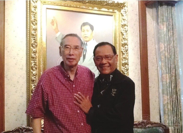 吴本立与泰国前副总理岱隆·素旺奇里(右)合影。 (吴本立供图)