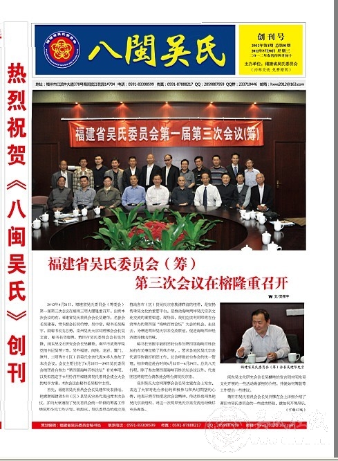 热烈祝贺《八闽吴氏》创刊